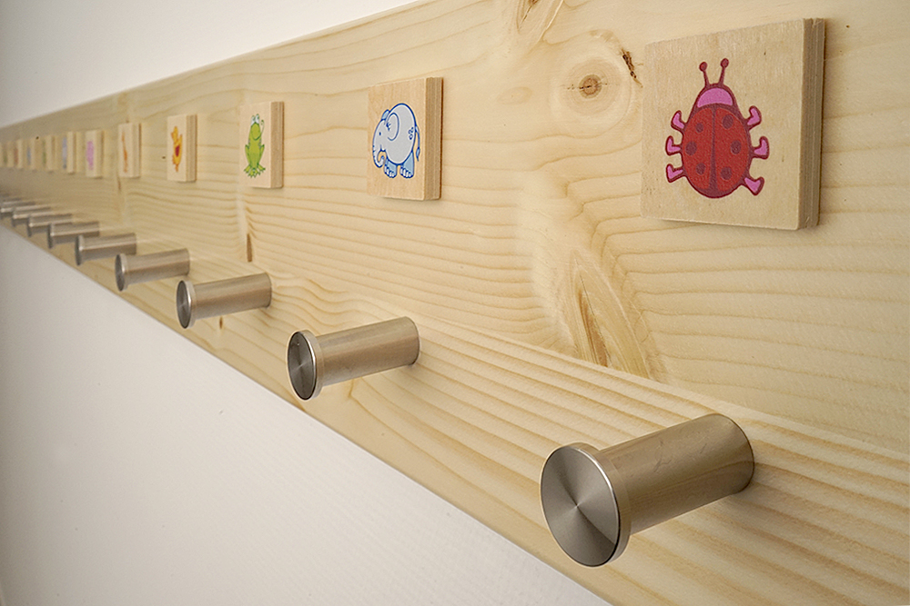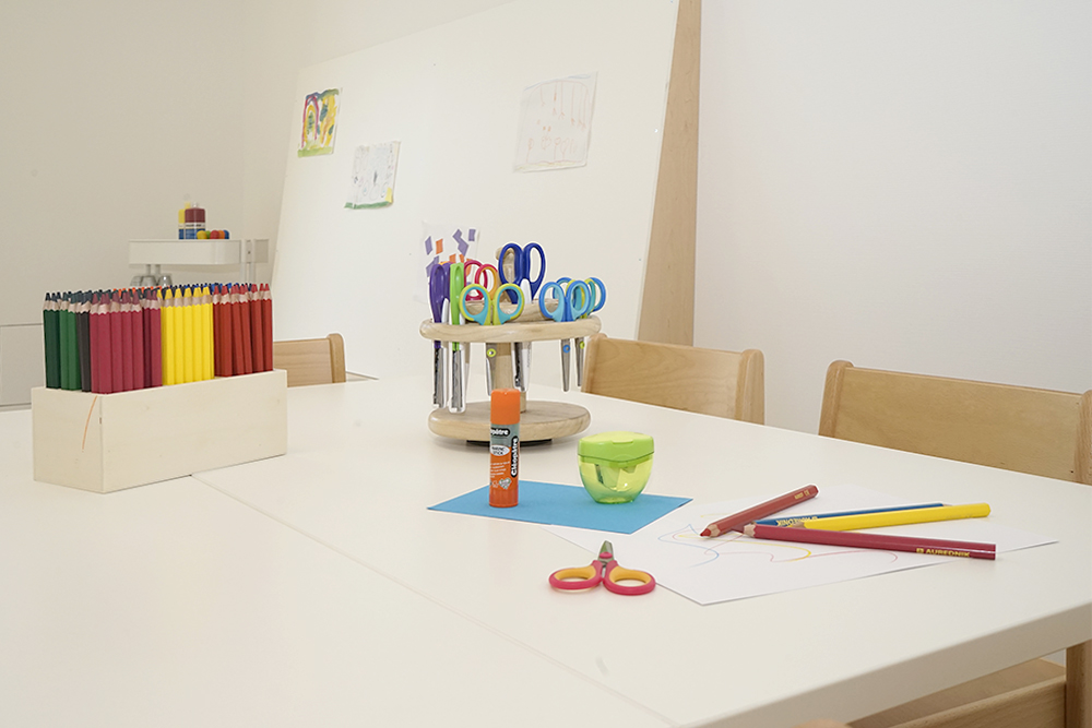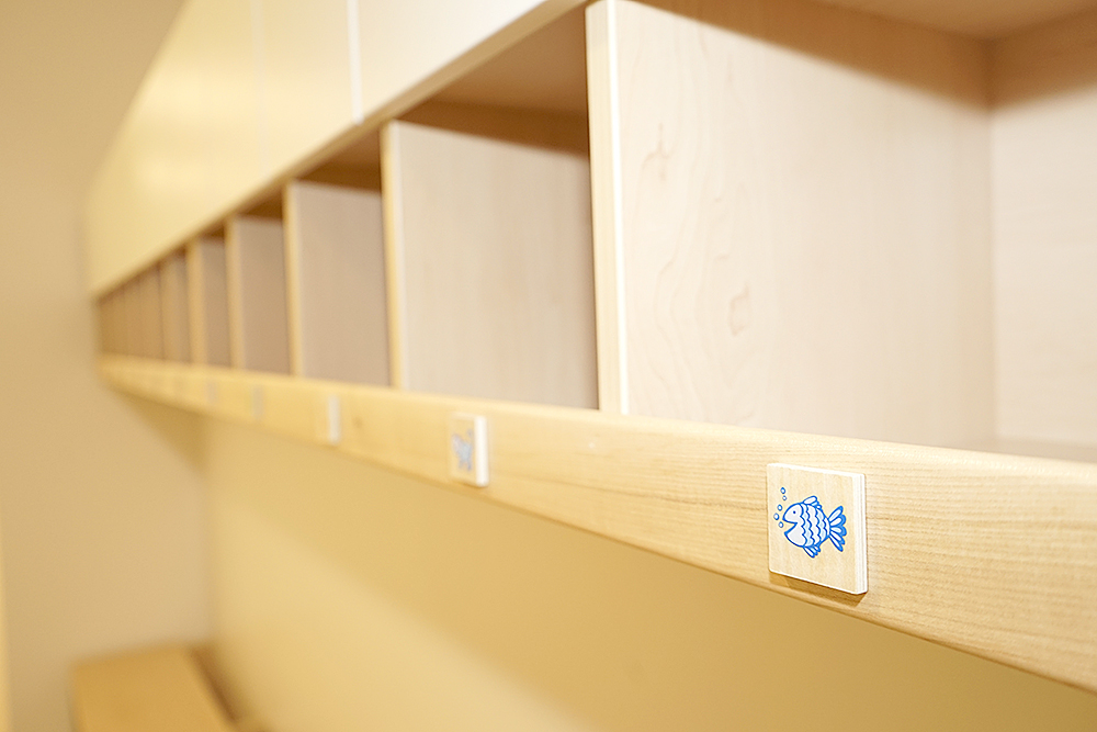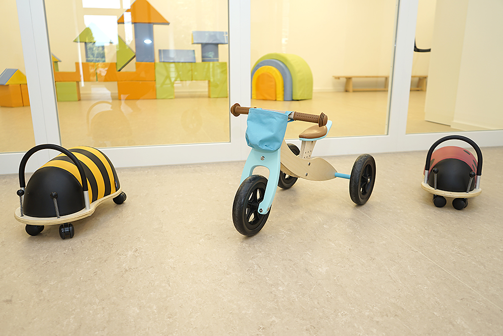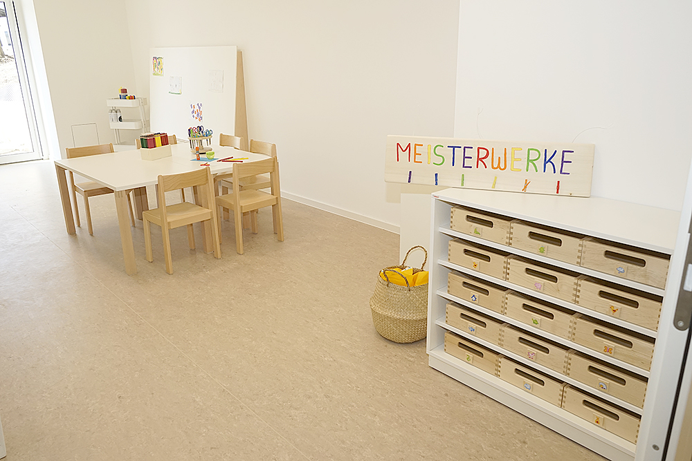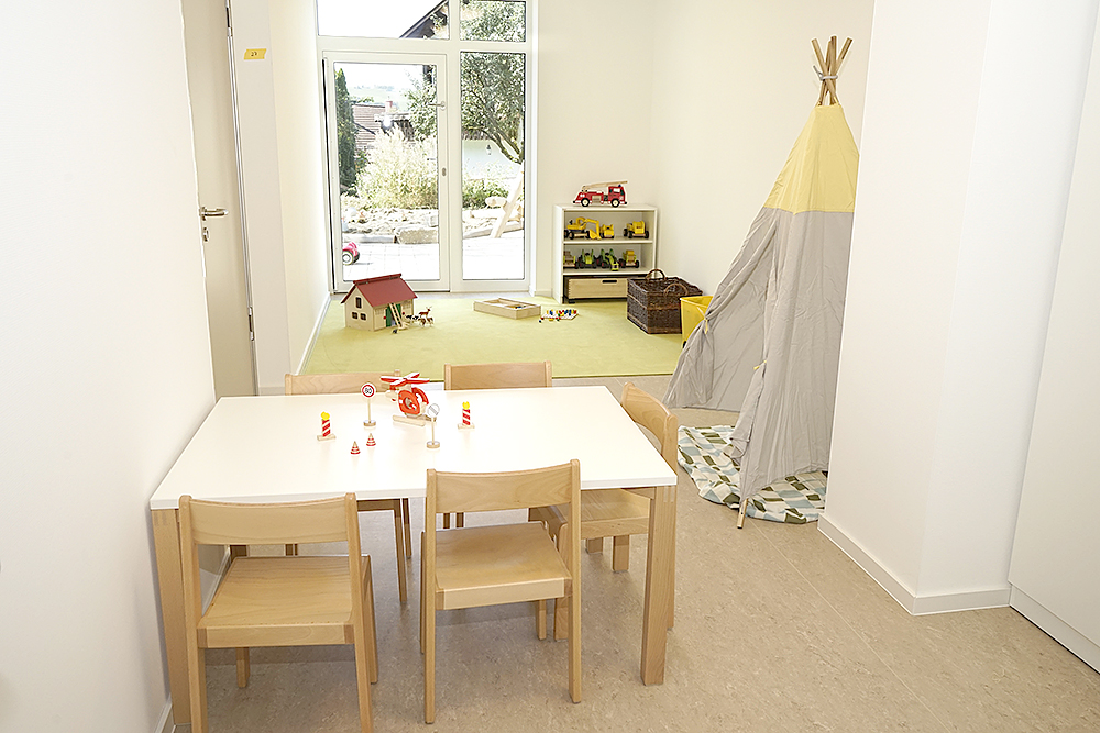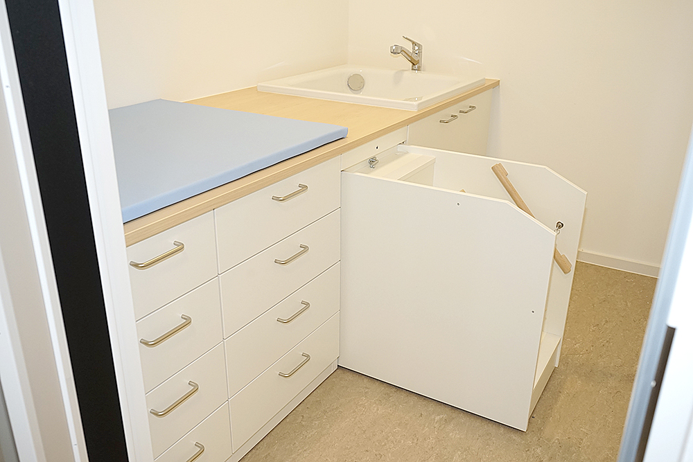 Die Wickelräume befinden sich nahe den Toiletten, dieses Raumkonzept unterstützt uns und ihr Kind bei der Sauberkeitserziehung.