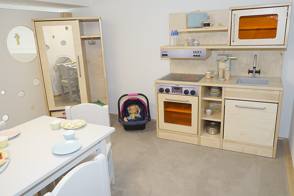 In unserem langen Spielflur haben unsere Kinder während der Freispielzeit die Möglichkeit, sich auf Rollenspiele einzulassen.