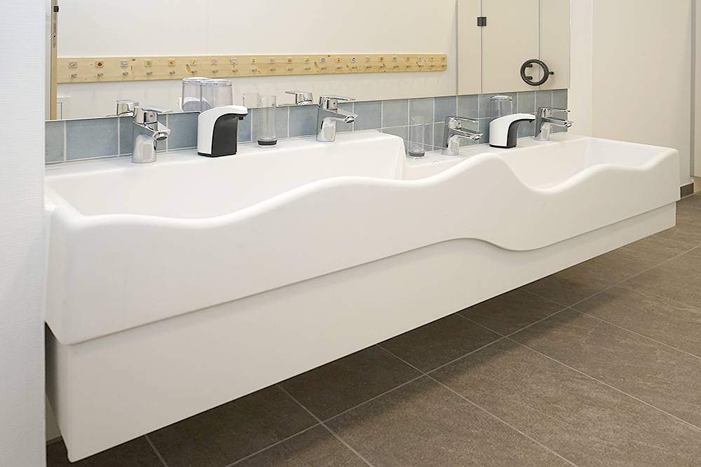 Unsere Kindertoiletten sind individuell auf die verschiedenen Altersstufen angepasst und befinden sich direkt gegenüber der Gruppenräume.