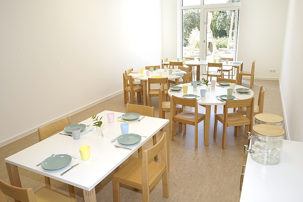 Unsere Küche verfügt über einen Bereich auf Kinderhöhe, in welcher unsere Kinder innerhalb eines Angebotes selbst aktiv werden können. Die Ernährungserziehung findet bei uns dadurch einen festen Platz im pädagogischen Alltag.
